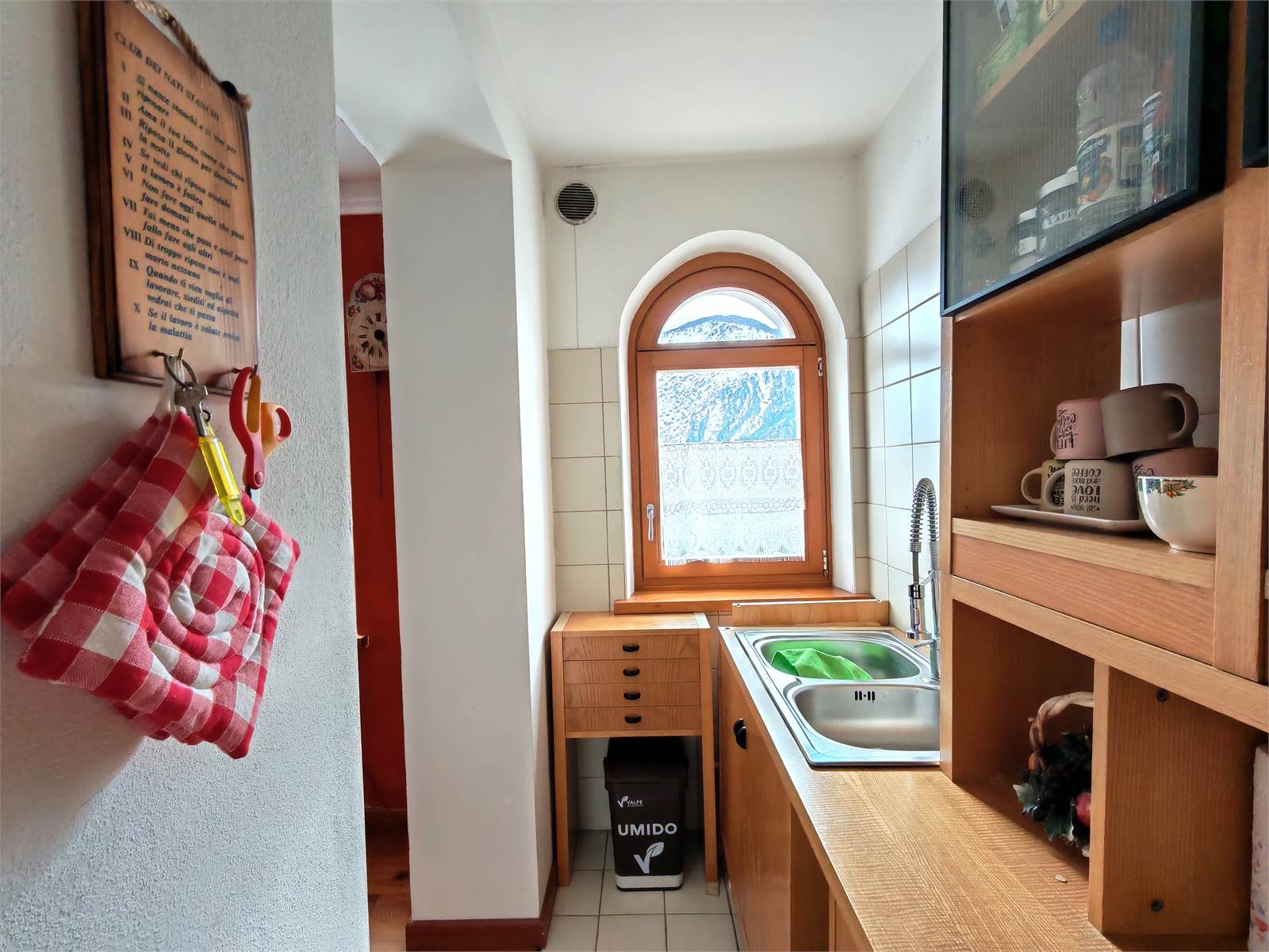 La casa offre una luminosa zona ingresso soggiorno dalla quale si accede all'angolo cottura non privo di privacy.